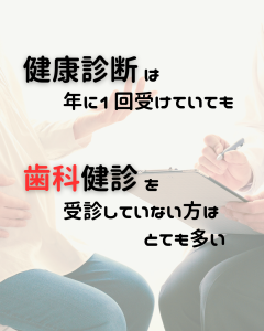 健康診断は年に1回受けていても、歯科健診は受けていないという方が多いのではないでしょうか・・・?